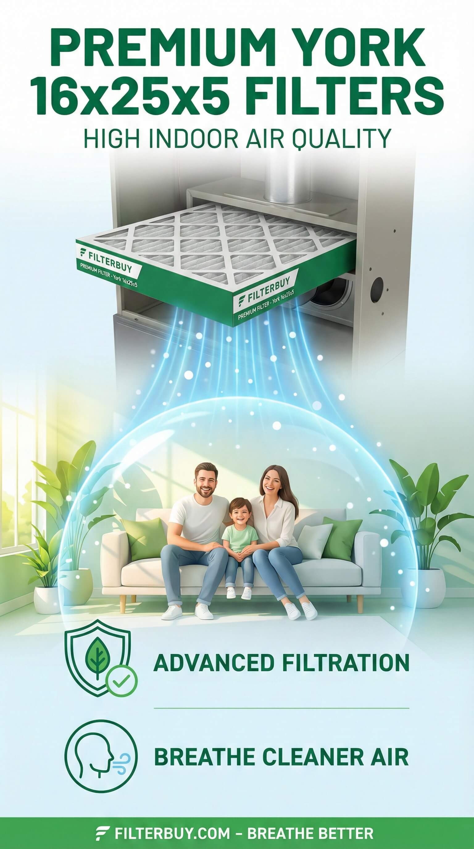 Premium York 16x25x5 filters are the clearest path to measurably better indoor air quality for York HVAC owners. The 5-inch pleated design gives you the media depth needed to run MERV 11 or MERV 13 filtration without the airflow penalties that plague thinner, high-efficiency filters.