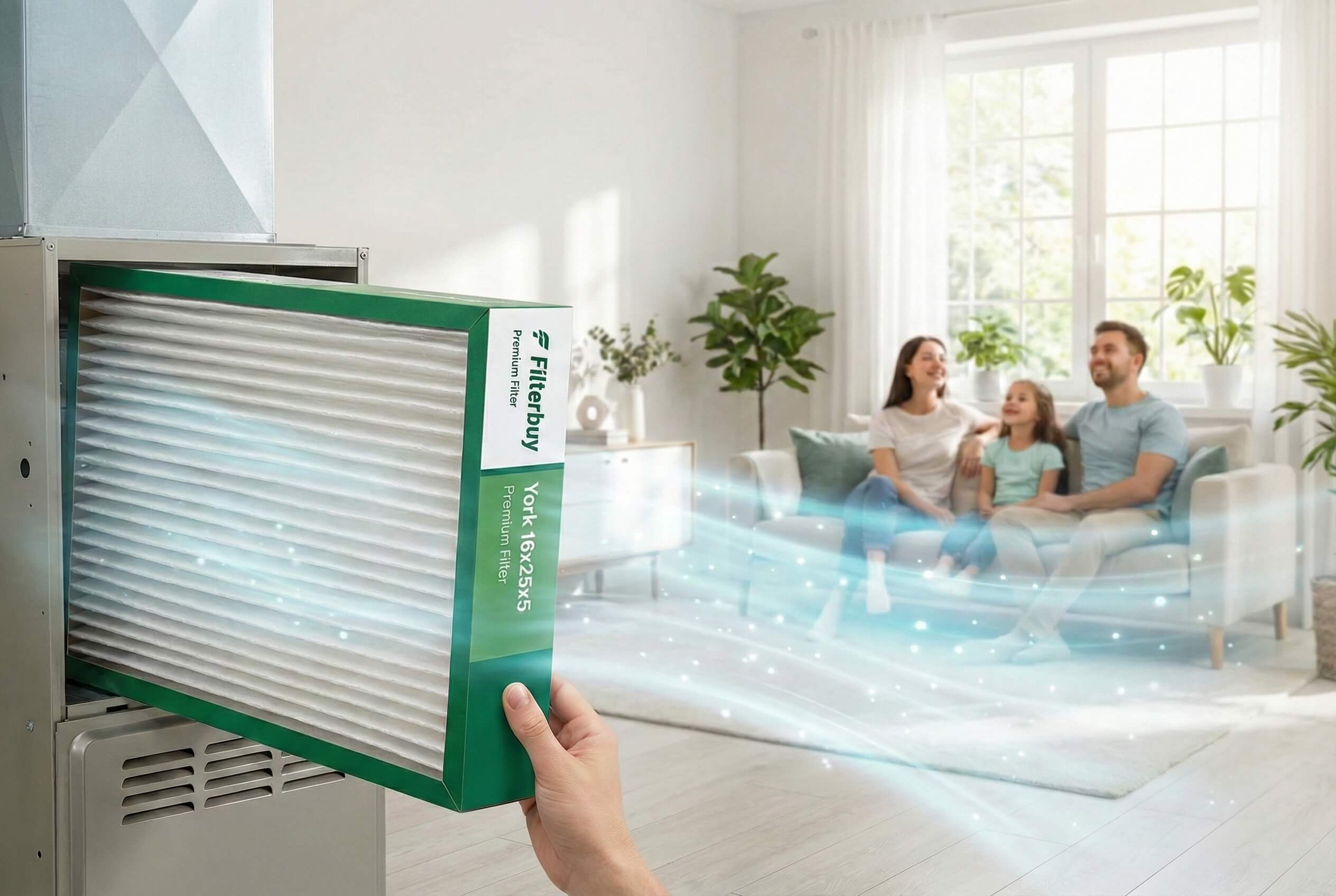 Having manufactured and shipped thousands of York-compatible 16x25x5 filters (actual size: 15.38” x 25.50” x 5.25”) to homes across the country, we’ve seen the measurable difference premium filtration makes—particularly in households with allergy sufferers, pets, or respiratory sensitivities. This guide breaks down what separates a premium York 16x25x5 filter from a basic one, why MERV rating matters more than brand name, and how to maximize your investment in cleaner air.